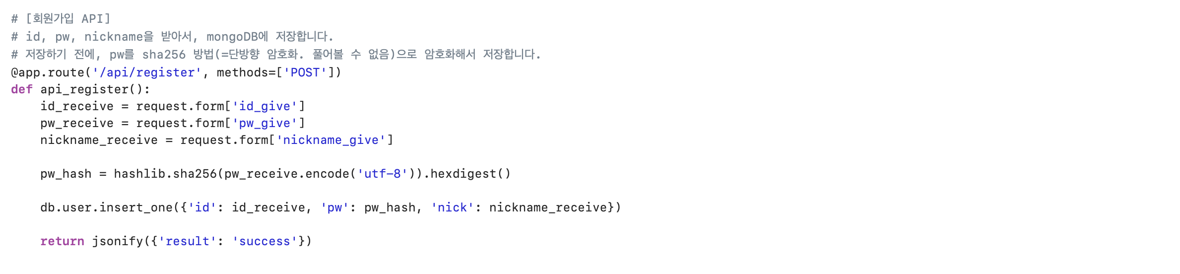 - 비밀번호를 암호화처리 해서 저장해준다.