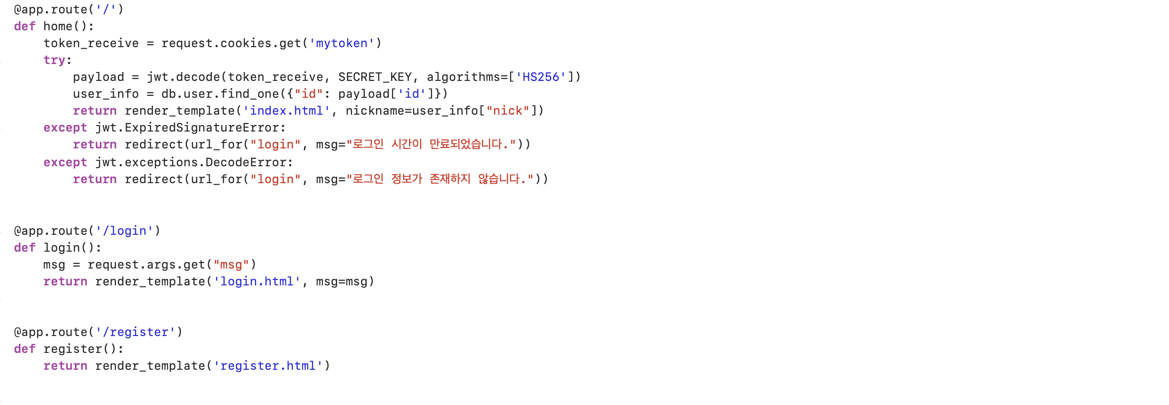 ② 토큰을 받은 후, playload와 user_info 정보를 통해 토큰이 만료되거나 디코딩 에러가 있을 때 메시지를 response 해주는 부분