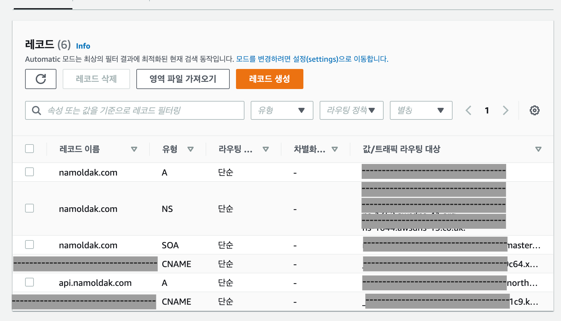 AWS > Route 53 > 호스팅 영역 > 레코드