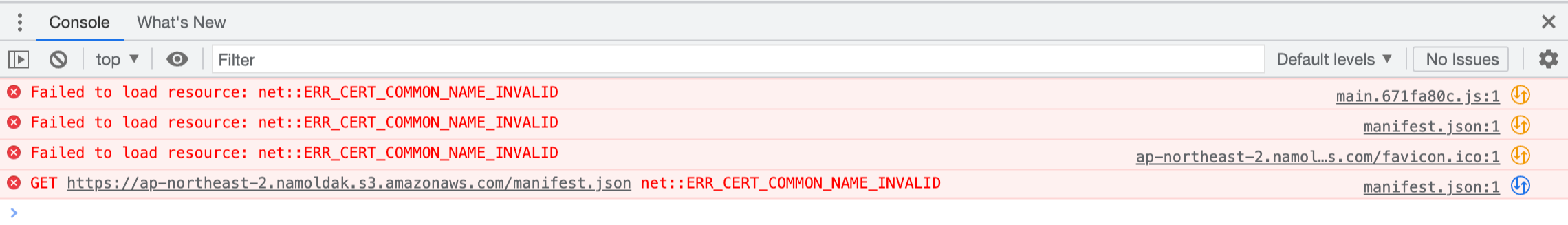 그런데, 인증서에 백엔드 도메인만 등록하고 프론트 도메인 주소를 등록해 주지 않아서 발생한 오류!