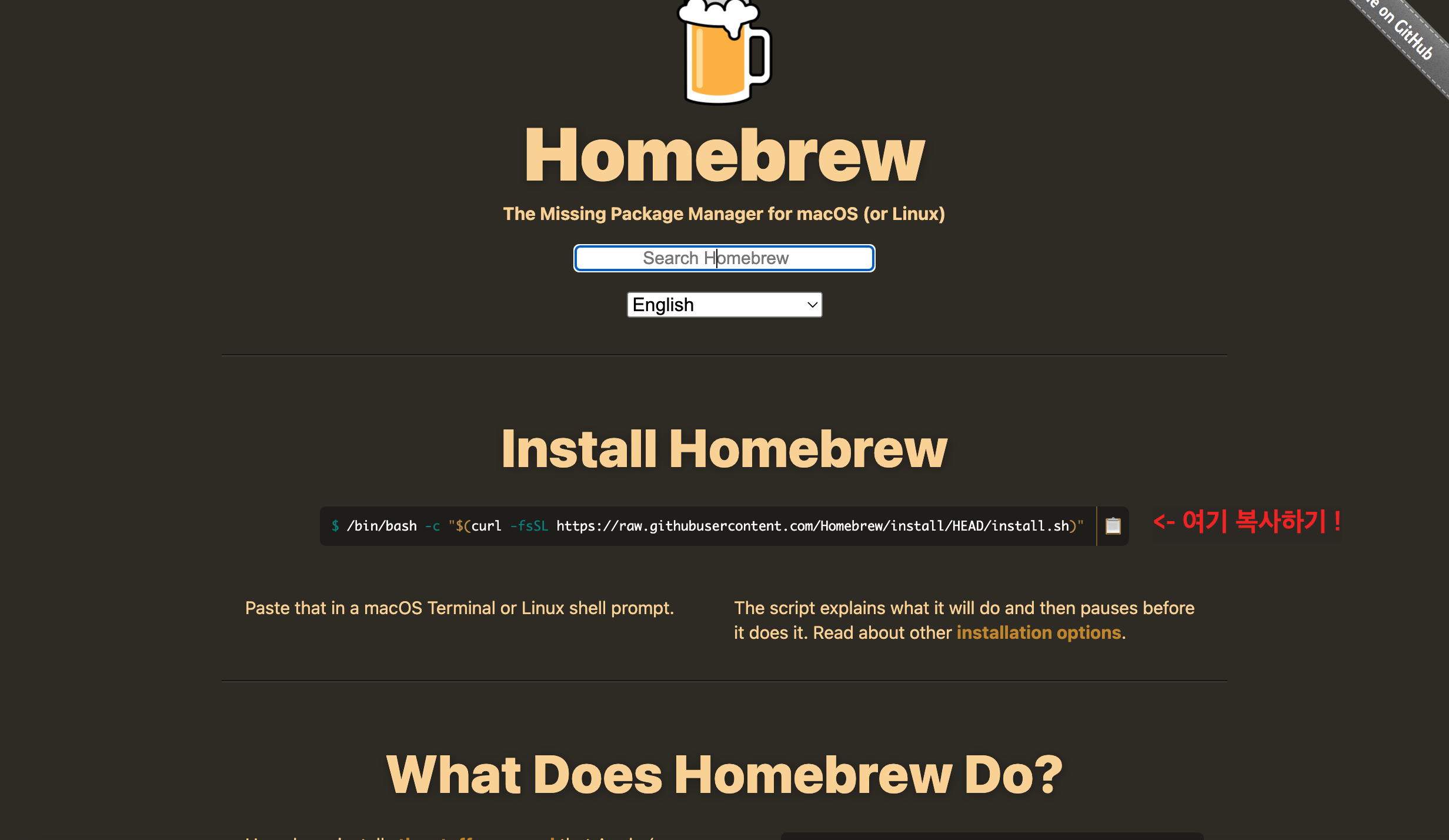 - 그다음 터미널 창에 $ brew install git 입력 후 엔터