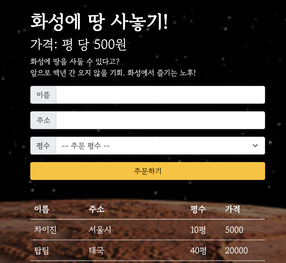 오늘은 항해99 10기 입학시험이 있던 날이다. 오늘 주어진 과제는 화성땅공동구매 화면에 가격란을 추가하고 평수에 따라 가격을 500원씩 계산한 값을 화면단에 보여주는 것이었다. 일단 가격에 대한 변수를 price라고 만들어 주었고, 그 값을 평수 * 500으로 구현하면 되는 것인데, 평수의 변수 값에 "평"이라는 문자때문에 연산에 에러가 났다. 그래서 특정 문자열 제거하는 함수를 구글링하여 문제를 해결했다.