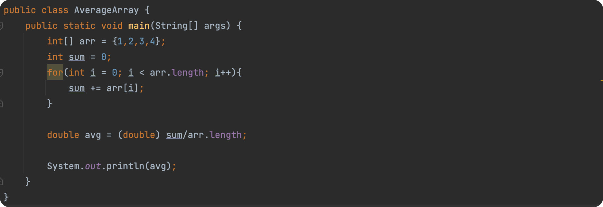 정수를 담고 있는 배열 arr의 평균값을 return하는 함수, solution을 완성해보세요.