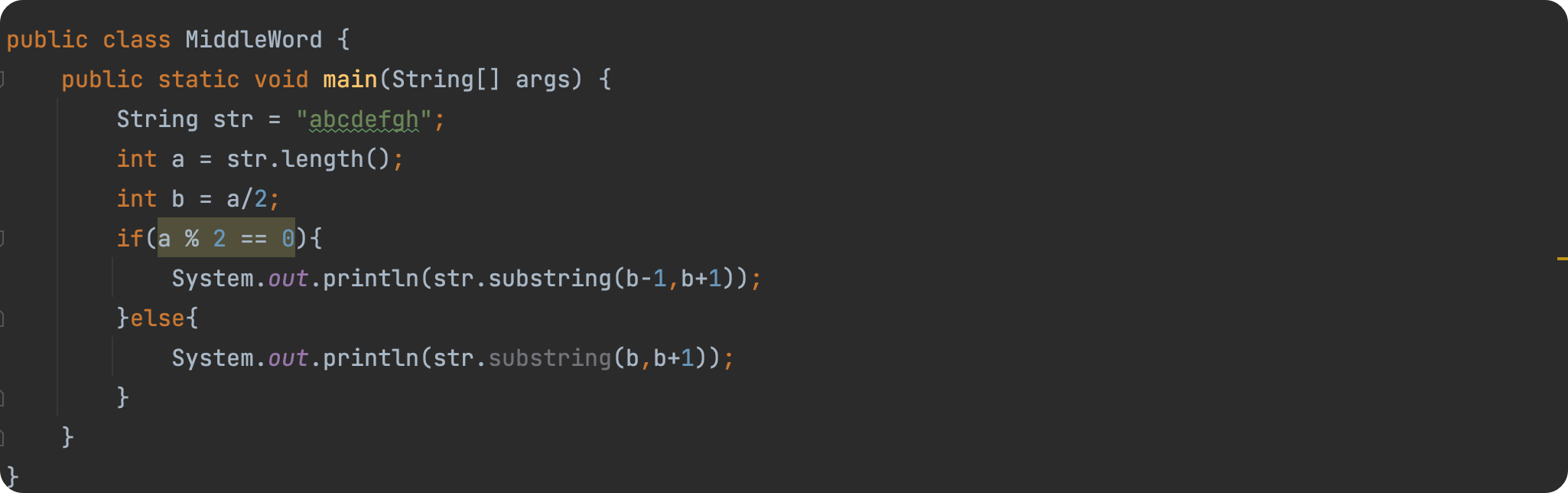 단어 s의 가운데 글자를 반환하는 함수, solution을 만들어 보세요. 단어의 길이가 짝수라면 가운데 두글자를 반환하면 됩니다.