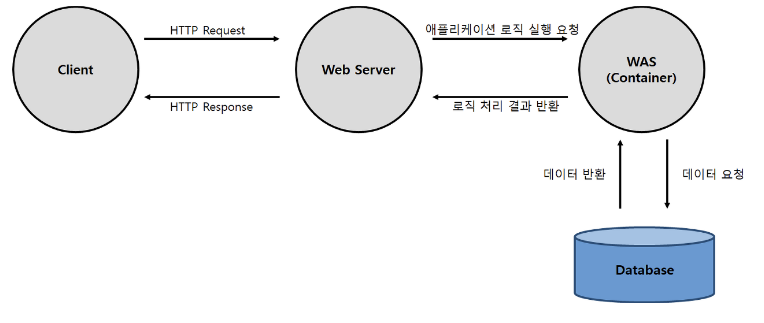 WAS는 웹 서버와 웹 컨테이너가 합쳐진 형태로, 웹 서버 단독으로는 처리할 수 없는 데이터베이스의 조회나 다양한 로직 처리가 필요한 동적 컨텐츠(JSP, ASP, PHP)를 제공한다.