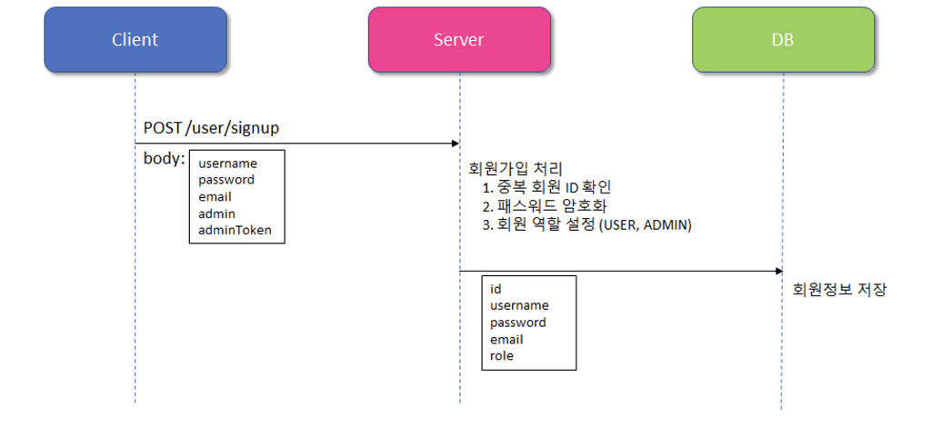 1. Client -> Server : 회원가입에 필요한 정보 (username, password, email 등)