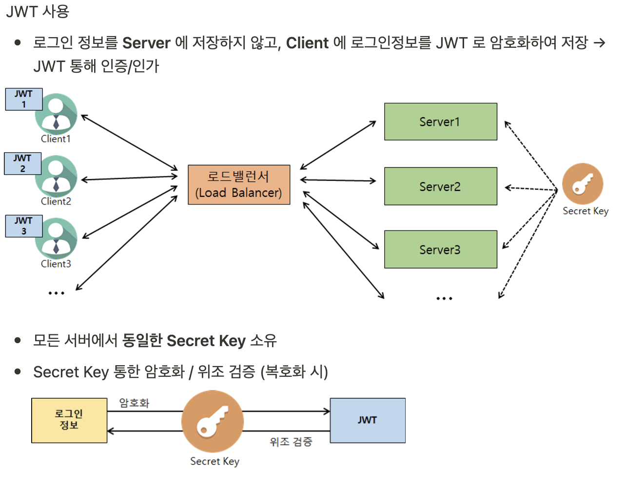 JWT 에 담는 내용이 커질 수록 네트워크 비용 증가 (클라이언트 → 서버)