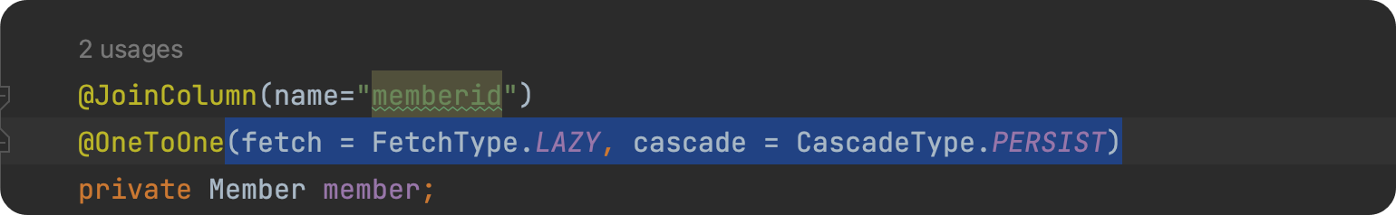 - CascadeType.REMOVE: 삭제 시 연관된 엔티티도 같이 삭제됨