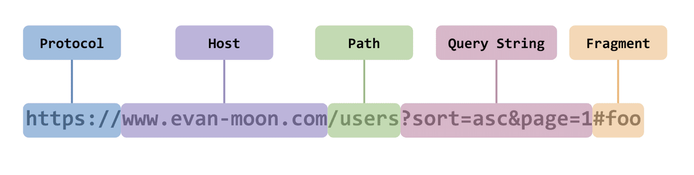 서버의 위치를 의미하는https://google.com과 같은 URL들은 마치 하나의 문자열 같아 보여도, 사실은 여러 개의 구성 요소로 이루어져있다.
