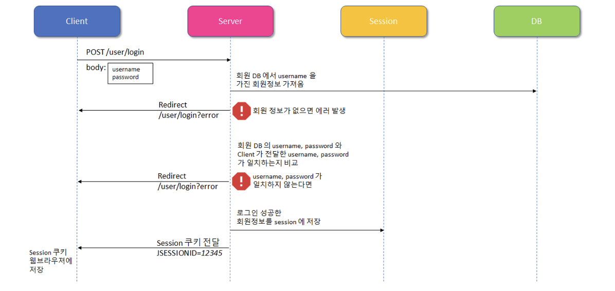 회원 DB 의 username, password 와 Client 에서 전달받은 username, password 가 동일한지 비교
